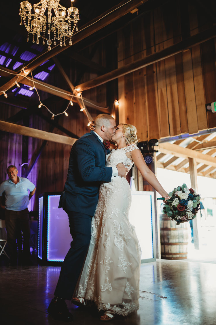 For four years Farmer and Frenchman has worked hard to provide brides and grooms with the perfect wedding experience. The renovated tobacco barn was first completed in 2016 and since has continuously been updated and improved. The entire event venue, which can hold around 400 people, includes 3 crystal chandeliers, glass doors, heating and air conditioning, colored lighting, and electricity.